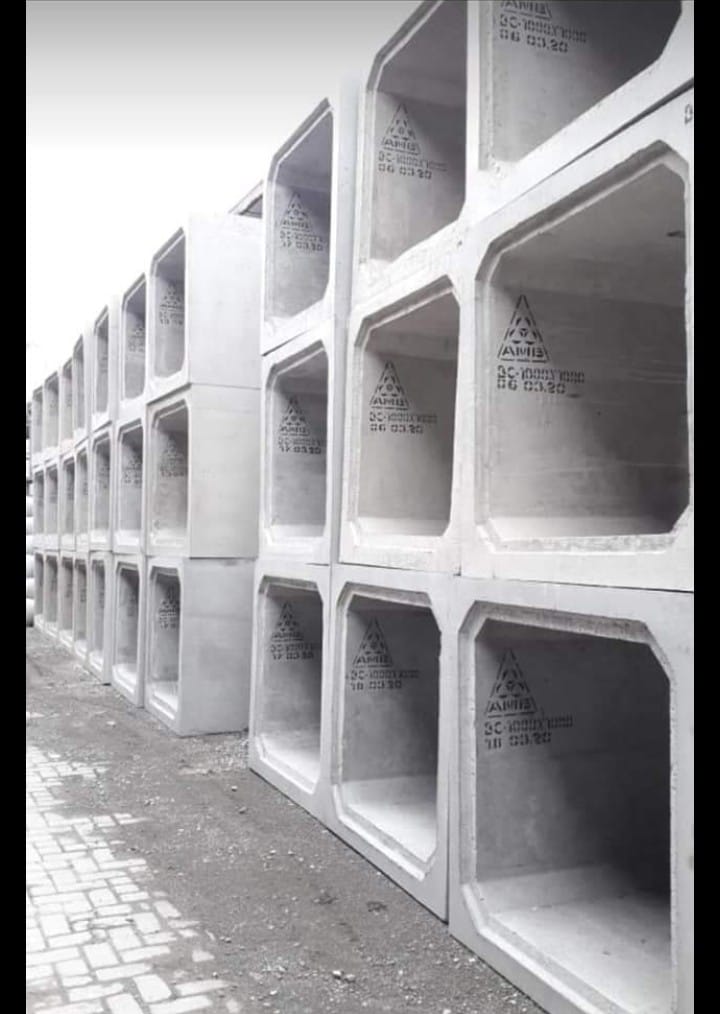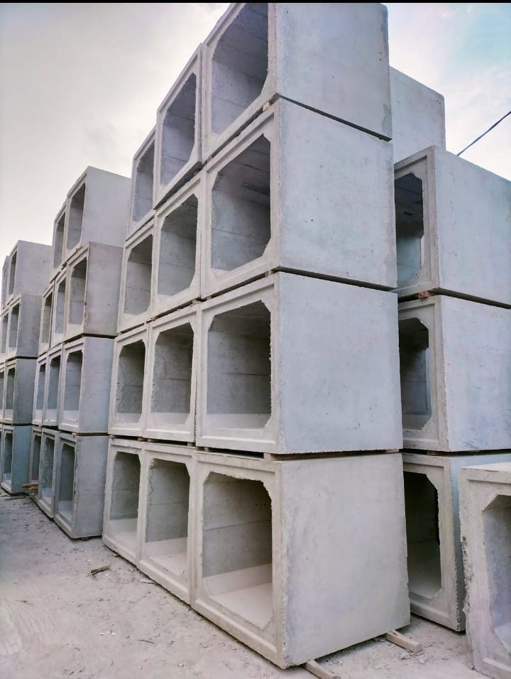 Box Culvert adalah struktur beton pracetak berbentuk kotak yang digunakan sebagai saluran air bawah tanah atau sebagai jembatan kecil penyeberangan air. Produk ini dirancang untuk menyalurkan air hujan, sungai kecil, air limbah, maupun digunakan sebagai akses jalan di atas saluran air.
